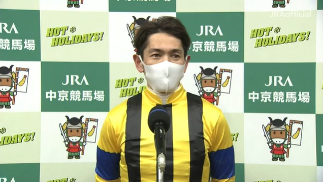「僕の馬が先に出ていてよくしのいでくれたね。馬の調子も良くて、力をつけている感じ。道中いいところをいい感じで運べて、自分から動く強気の競馬をしました。ペースが速くなるのは分かっていた。体が増えていて、重いのではなくて成長分。新馬戦以来の2勝目ですね。今日も強い勝ち方で今後も楽しみです」