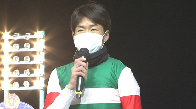 「地元(船橋)のビッグレースを初めて取らせてもらってめちゃくちゃうれしいですね。感無量です。(前走から14キロの馬体増で)正直、返し馬で少し重めだなと感じましたが、結果を出してくれて大した馬だなと思いました。メイショウ(カズサ)を行かせて2番手も想定していたんですが、スタートも良かったので、こちらがハナを主張していきました。勝負どころでダノンファラオが早めにきて、手応えがよさそうだったので分が悪いのかなと思ったんですが、4コーナーでステッキを入れると反応してくれて、きょうは地力で勝ったという感じですね。きょうはG2を勝てたので、これからはもうひとつ上のレース(G1)を目指していくと思います。頑張りたいです。地元・船橋の勝ってみたいレ^スのひとつであるダイオライト記念を勝ててうれしく思います」