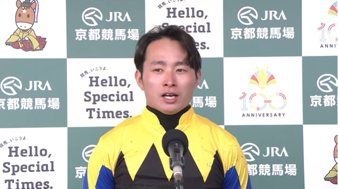 「強かったです。思った以上にスローだったので、折り合いかどうかと思ったけど、馬具の工夫で折り合いがついて、いいポジションで競馬できたのが勝因です。今週は内の馬場がよく、枠も内だったので決め打ちで乗りました。(20キロ増は)数字だけ見ると重かったけど、厩舎もしっかり仕上げてくれてよかったです。7歳ですけどフレッシュですし、不治の病(屈腱炎)を持ちながらも重賞を勝ってくれましたし、さらに今年飛躍してくれるんじゃないかなと思います」