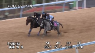 内・オーロラフラッシュ(馬也)を6Fで0秒5追走・1F併せで0秒1先着