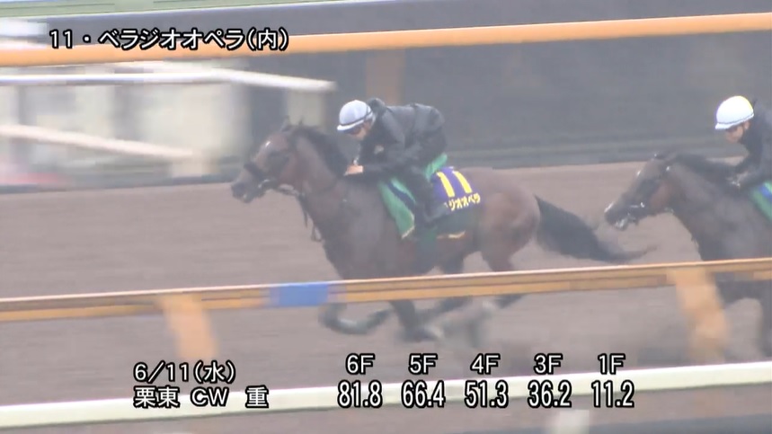 「1週前は良かったんじゃないですか。雨で下がだいぶ重い中でも時計は出ていますし、思い通りに来られています。暑さに弱いですが、今年から開催が早くなっているのはいいと思います。去年は淀で雨が降ったけど、今年は阪神で馬場がいいと思うので期待したい」